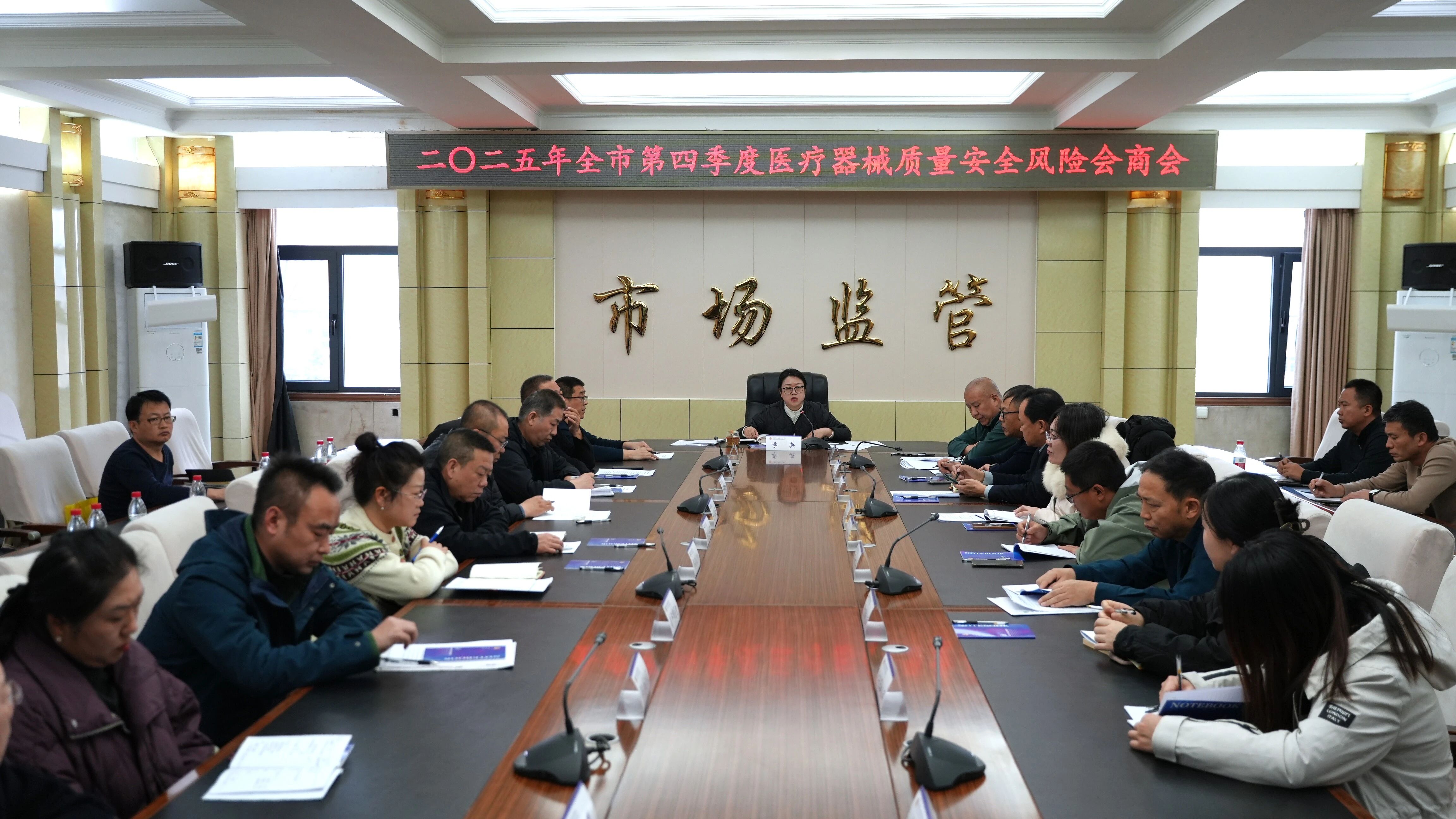 会议听取了各县(市、区)局、开发区分局2025年度医疗器械执法监管和季度风险会商情况,5家经营使用单位医疗器械质量安全风险自查情况;通报了全市前三季度医疗器械风险研判和处置情况,围绕第四季度医疗器械监督抽检、不良事件监测等情况进行风险会商,分析研判了医疗器械质量安全形势,并对下一阶段重点工作作出安排。