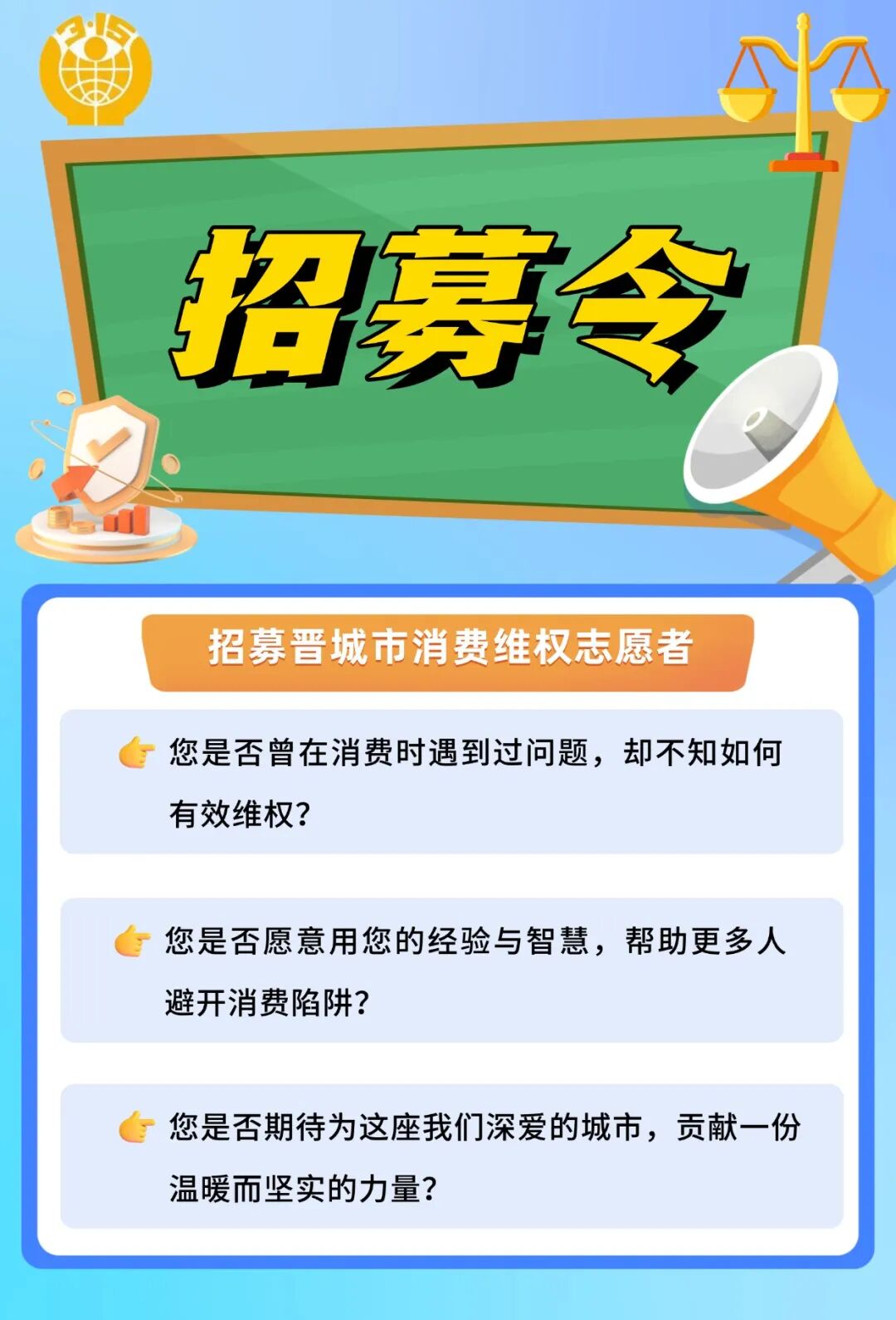 晋城市消费者协会,诚邀您加入消费维权志愿者队伍,共同优化晋城放心消费环境。