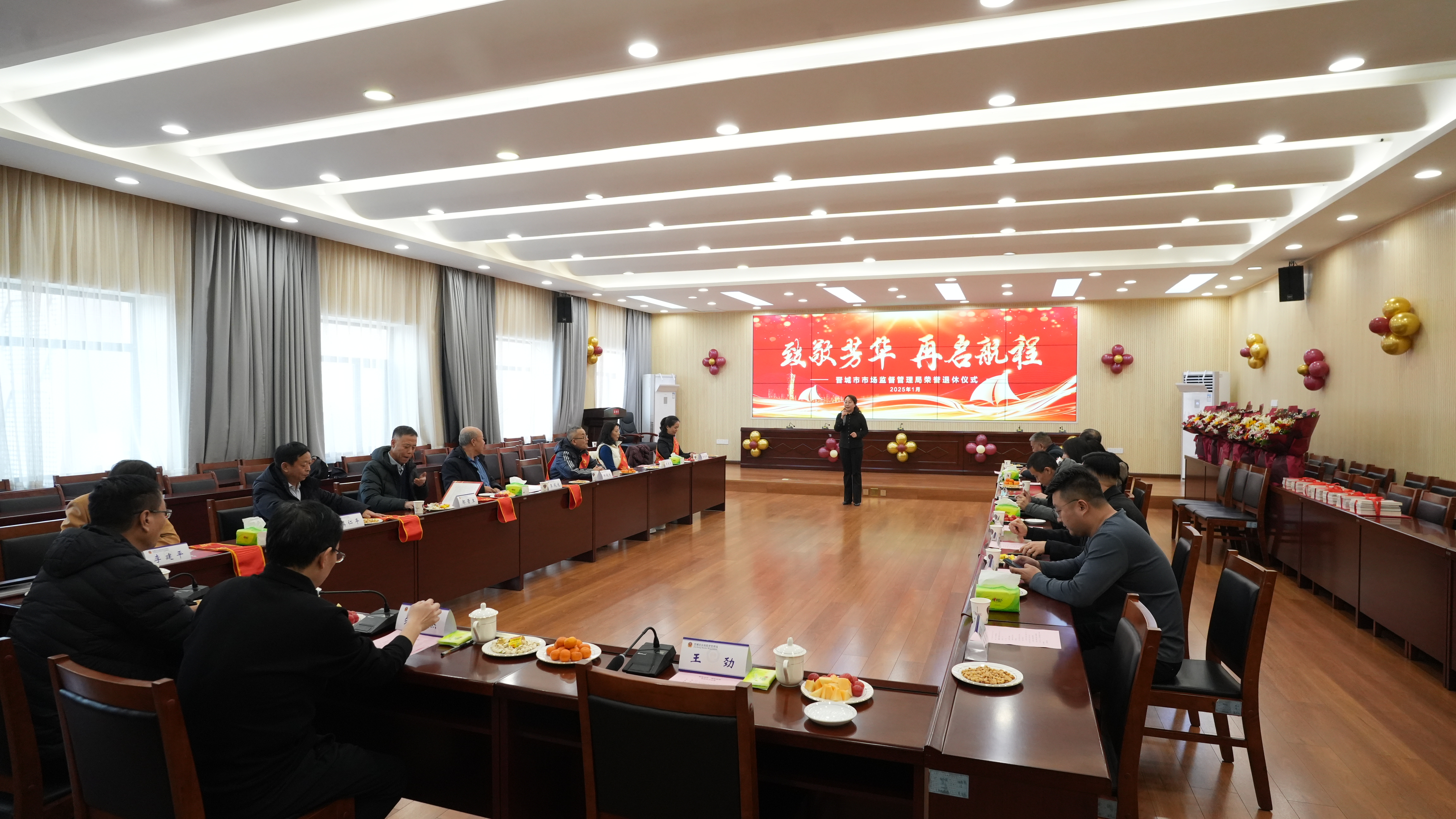 1月22日上午,市市场监管局举办“致敬芳华 再起航程”光荣退休仪式,欢送近期光荣退休的干部职工。局党组书记、局长朱慧杰出席仪式并讲话,相关班子成员、科室负责人及部分干部职工参加了仪式。