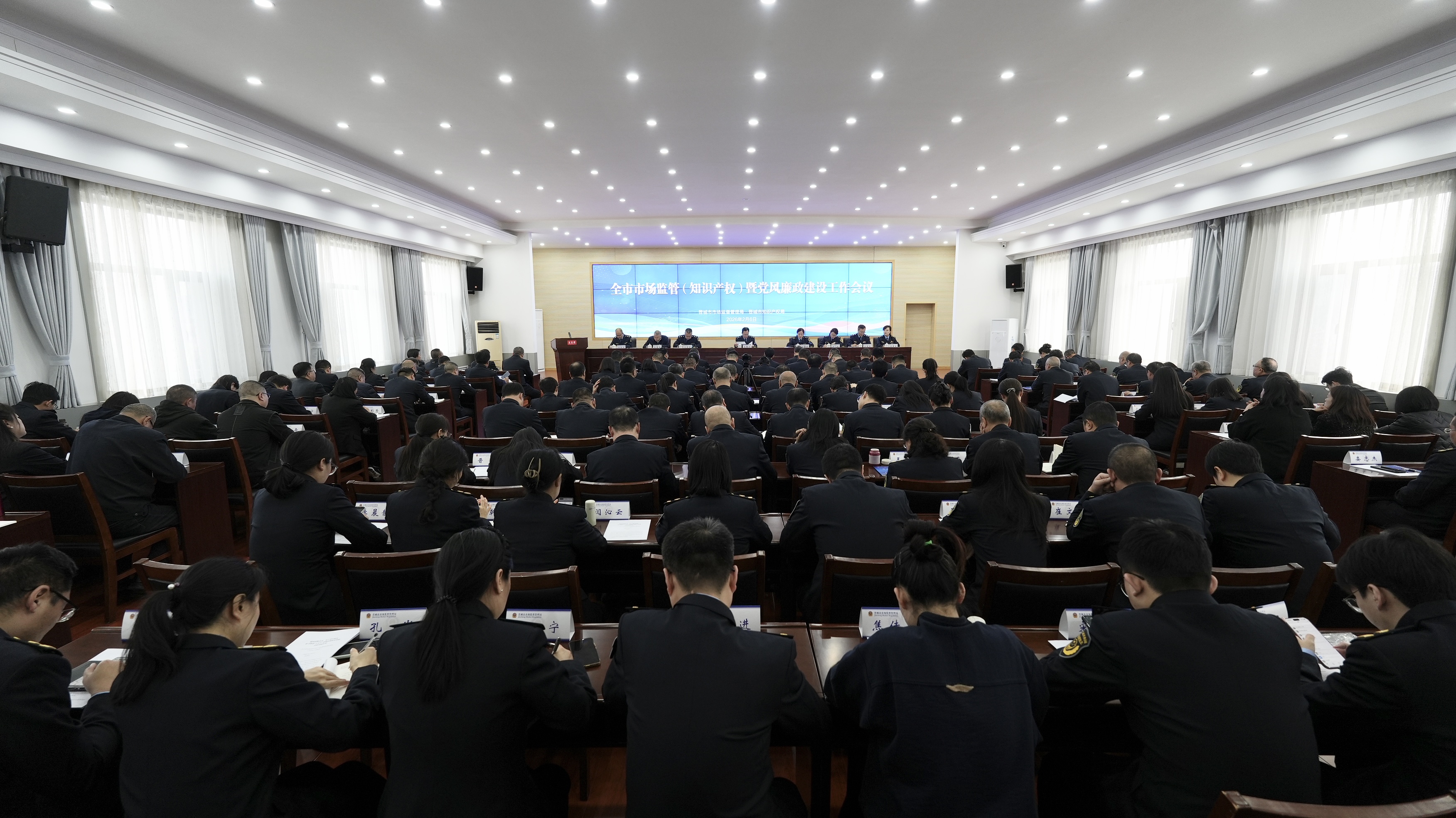 2月6日,全市市场监管(知识产权)暨党风廉政建设工作会议召开,会议认真落实中央、省委、市委经济工作会议精神和市委、市政府决策部署,按照总局、省局工作会议要求,总结2025年及“十四五”工作,明确新形势、新要求和新思路,部署2026年重点任务。市局党组书记、局长朱慧杰作工作报告,市局党组成员、副局长闫莉莉主持会议,其他班子成员参加会议。